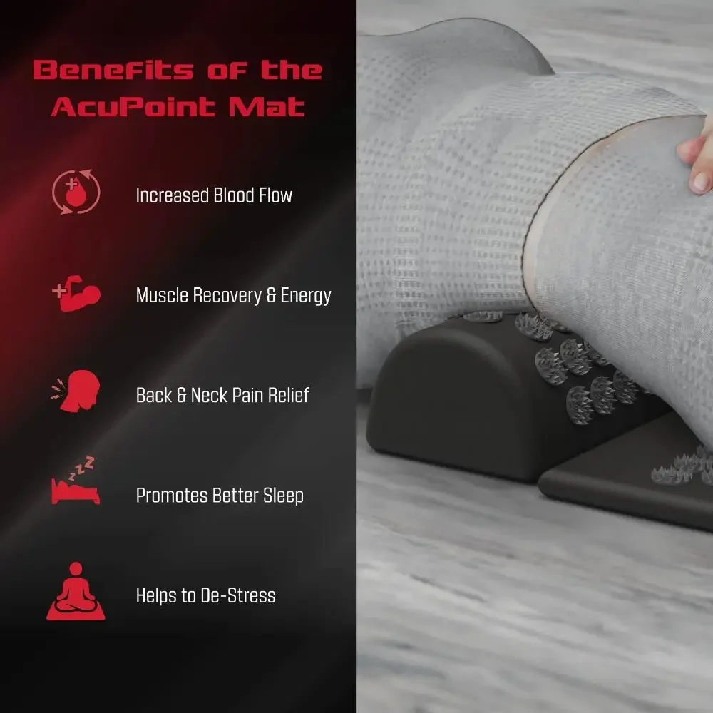 This acupressure mat and pillow set is designed to help relieve back and neck pain through natural pressure stimulation. It features a surface covered in small spikes that target pressure points across the body. The included pillow provides additional support for the neck and enhances relaxation. Regular use may help reduce muscle tension and improve blood circulation. It is ideal for people who experience chronic pain, stiffness, or stress. The mat can be used on the floor, bed, or sofa for flexible comfort. Lightweight and easy to store, it is convenient for daily use at home or while traveling. The durable materials ensure long-lasting performance even with frequent use. It supports relaxation after workouts or long days of sitting. This wellness tool is a simple and effective way to promote overall comfort and recovery.